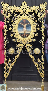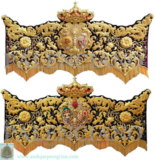 ¿Cuáles han sido fuera del entorno de la Virgen de la Cabeza, tus proyectos más importantes? En relación al diseño cofrade hay muchos proyectos interesantes puesto que empecé a trabajar en este campo mucho antes que el bordado. Por ser el primero que se llevó a la realidad, la carreta del Rocío de Jaén y destacados por su importancia y difusión han sido el paso del Gran Poder de Andújar, el diseño de la orfebrería del palio de la Hermandad de la Santa Cena de Jaén. El paso del Nazareno de la hermandad de la Vera Cruz de Moguer y demás diseños para esa Hermandad. Respecto al bordado, los dos simpecados del Rocío, el de Linares y el de Jamilena, los trabajos para la Cofradía de la Expiración de Jaén, destacando el palio, el guión de la Hermandad del Perdón de Jaén, algunos estandartes como el de los Dolores de la Carolina, o algunas sayas como la de la Vera Cruz de Andújar.