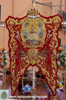 Estudiando Bellas Artes en Granada, se refundó la Cofradía de esta ciudad. La componíamos un importante número de jóvenes, que ilusionados, íbamos andando hasta el Santuario y se pensó en hacer un banderín, siendo éste mi primer trabajo.